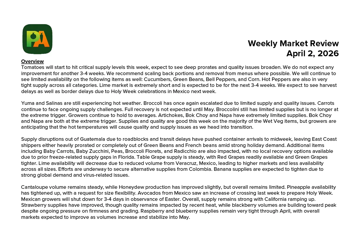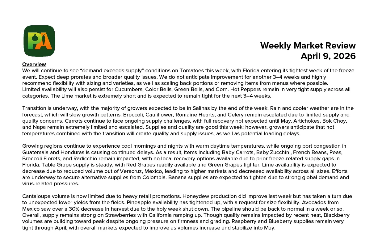 Produce Alliance Market Alert